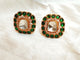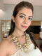 Featuring a pair of gold finish chandbali motifs earrings with stone head, pearl bunches hanging drops, set in base metal. Style tip: Wear it with gold or any pastel colour lehnga or sari and half moon polki mang-tikka. Color: White & Gold Material: Gold Finish Base Metal Product Weight: 60 grams Length: 6...